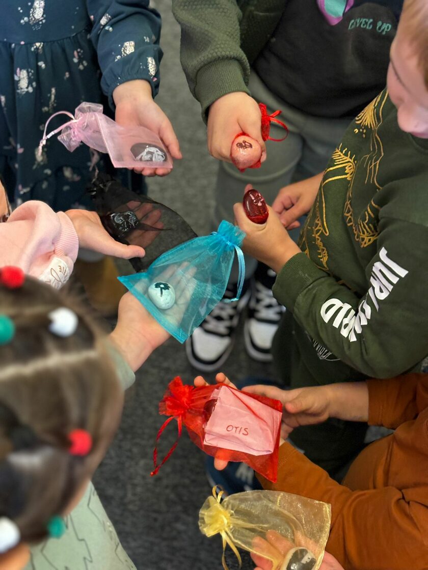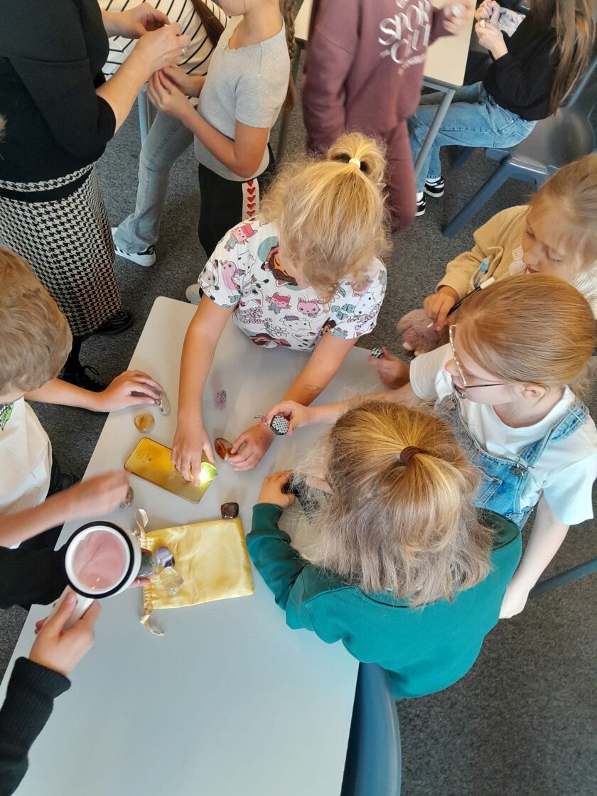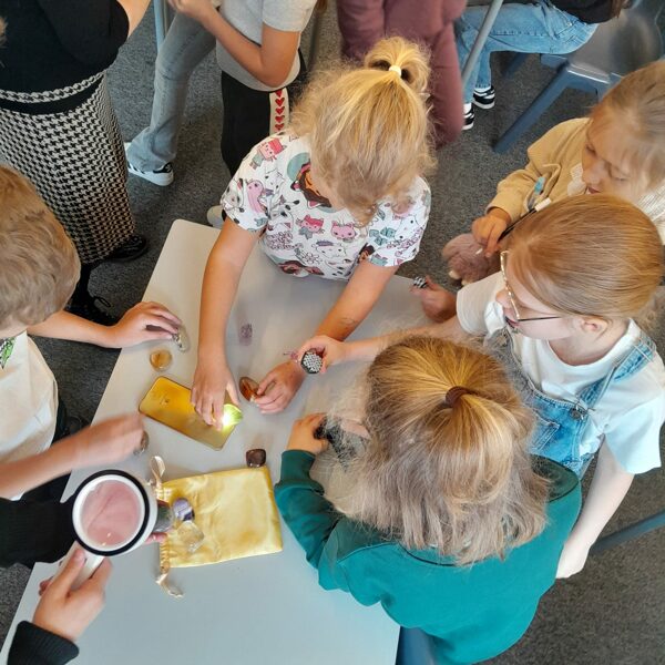 Tai pirmoji edukacinė popietė su kristalais. Susitikimo pradžia atrodė kaip normalus ir paprastas procesas: lietėme rankomis visus akmenėlius, rinkomės savo kristalus ir piešėme ant jų. Tačiau vėliau, kai pradėjome žaidimą "Emocijos ir jausmai", atsivėrė įdomūs dalykai. Buvau nustebinta vaikų išlaikytu dėmesiu, nes kartais jiems norisi daugiau judėjimo ir veiksmo. Žavėjausi jų nuoširdumu, atvirumu bei noru atvirai dalintis apie tai, ko bijo, ko pavydi ir ant ko pyksta. Baimė tamsos, pavydas, kad draugas turi žaidimą, kurio neturiu aš ar pyktis ant mamos, kai ši neleidžia mergaitiškai pasidažyti, kaip tai daro draugės ir pan. Tai tik smulkmenos, palyginus su tuo, ką iš tikrųjų kiekvienas iš vaikų moka, gali ir geba padaryti. Žaidimo eigoje būtent ten ir buvo mūsų dėmesys: atrasti savo stiprybes ir nesilygiuoti į kitus!